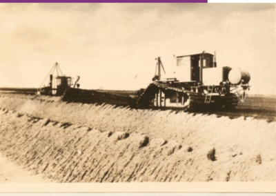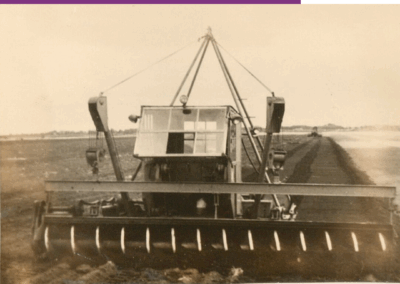 Schwere Maschinen prägten die Maßnahmen des Emslandplans. Dabei war es nicht nur die Firma Ottomeyer, die die zahlreichen Kultivierungsarbeiten durchführte. Eine Mitte der 1950er-Jahre herausgegebene Broschüre der Firma „Dr. Ing. Joachim Rathjens Ingenieurbauten“ aus Hamburg-Altona zeigt den Einsatz des „Untergrundförderers“. Seit 1951 war die Firma Rathjens nach Auftrag der Staatlichen Moorverwaltung im Emslandtätig. Das Ingenieurbüro Rathjens hatte daher auch einen Sitz in Meppen. Der hier vorgestellte „Untergrundförderer“ lief auf einer Vollraupe und das Bohr-Rohr drang bis zu 4 m in den Boden ein und brachte den Sand unter den Moorschichten nach oben. Wichtig war vor dem Beackern mit diesen Geräten die Entwässerung der Moorgebiete. Danach folgte eine Planierung des Geländes und die gleichzeitige Verfüllung der Bohrlöcher. Die Flächen konnten schließlich landwirtschaftlich genutzt werden. Aber auch im Straßenbau waren diese Geräte im Einsatz. Das hier angewandte „Moorschlitzverfahren“ sorgte für die Besandung der Wege. Rathjens gab an, dass seine Methode besonders preisgünstig sei. Die zahlreichen in der Broschüre eingeklebten Werbefotos belegen den Einsatz dieser Maschinen in den emsländischen Moorgebieten.