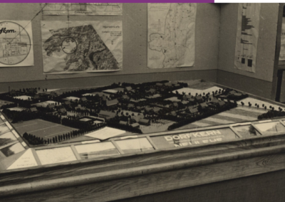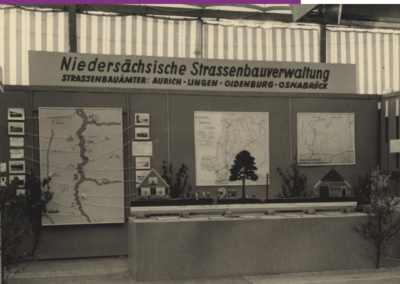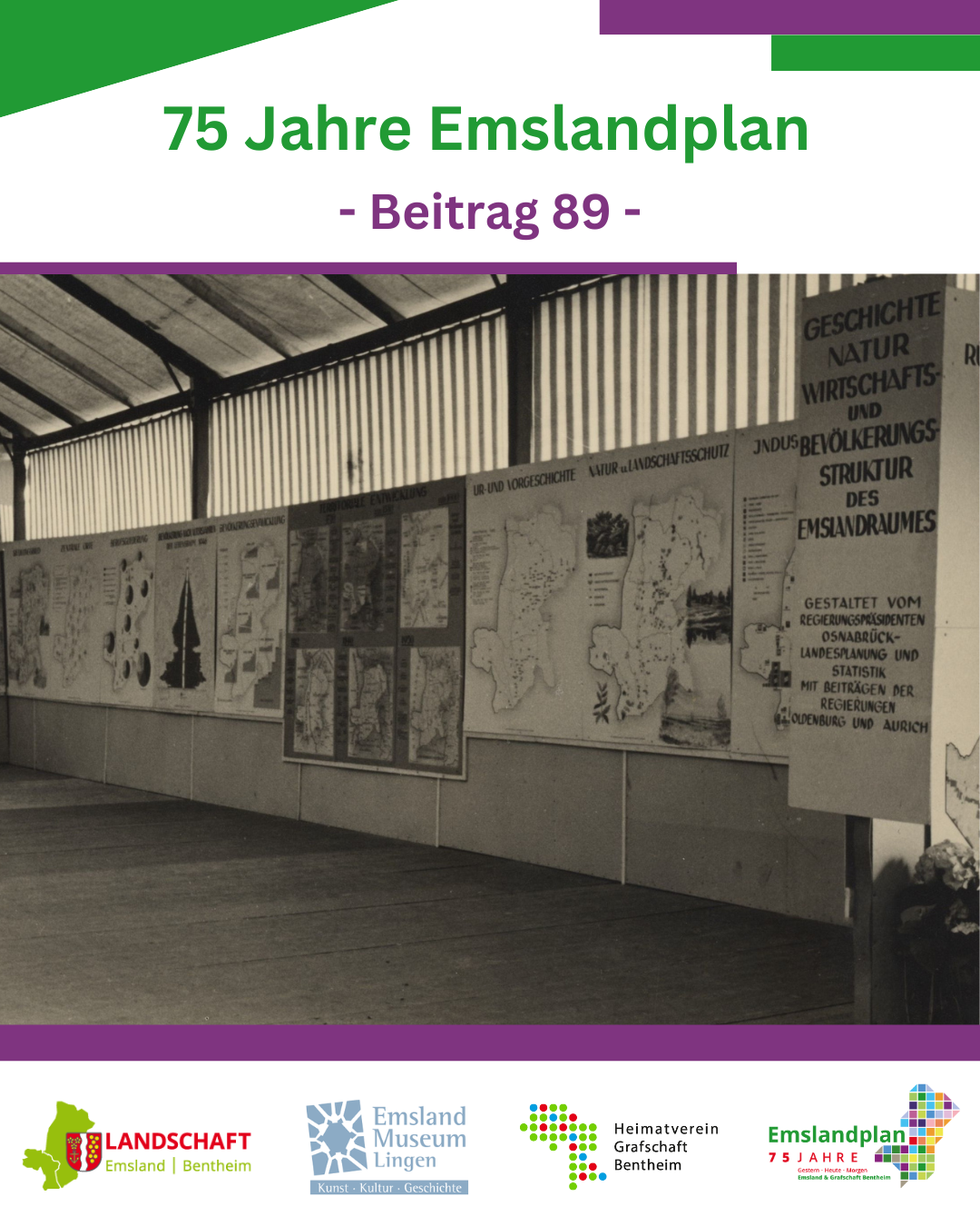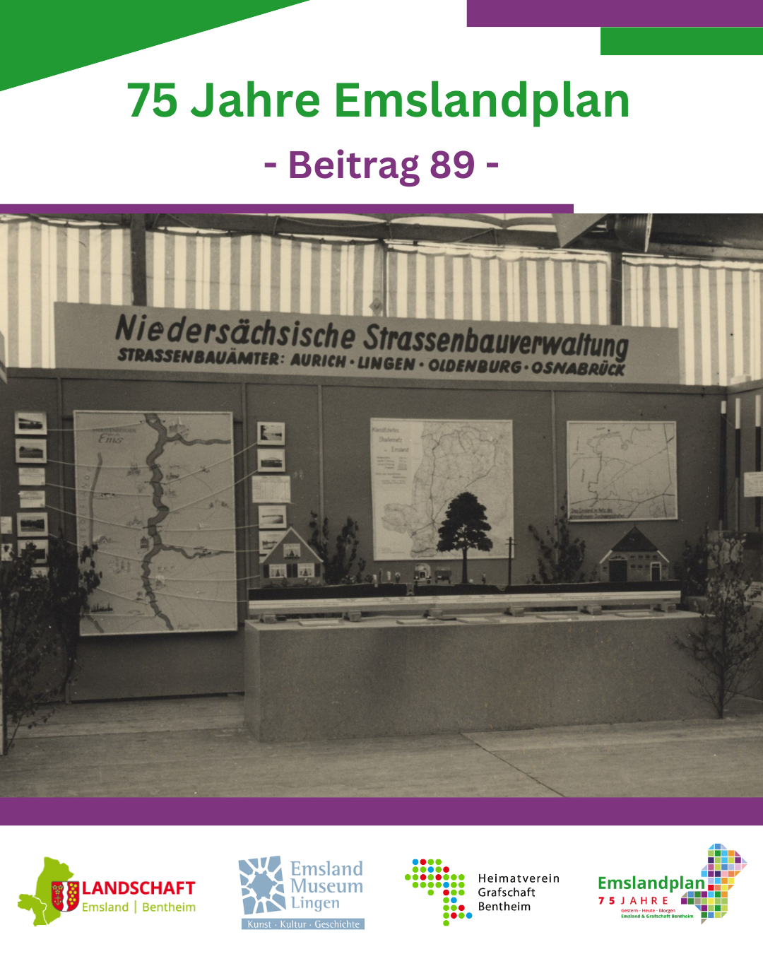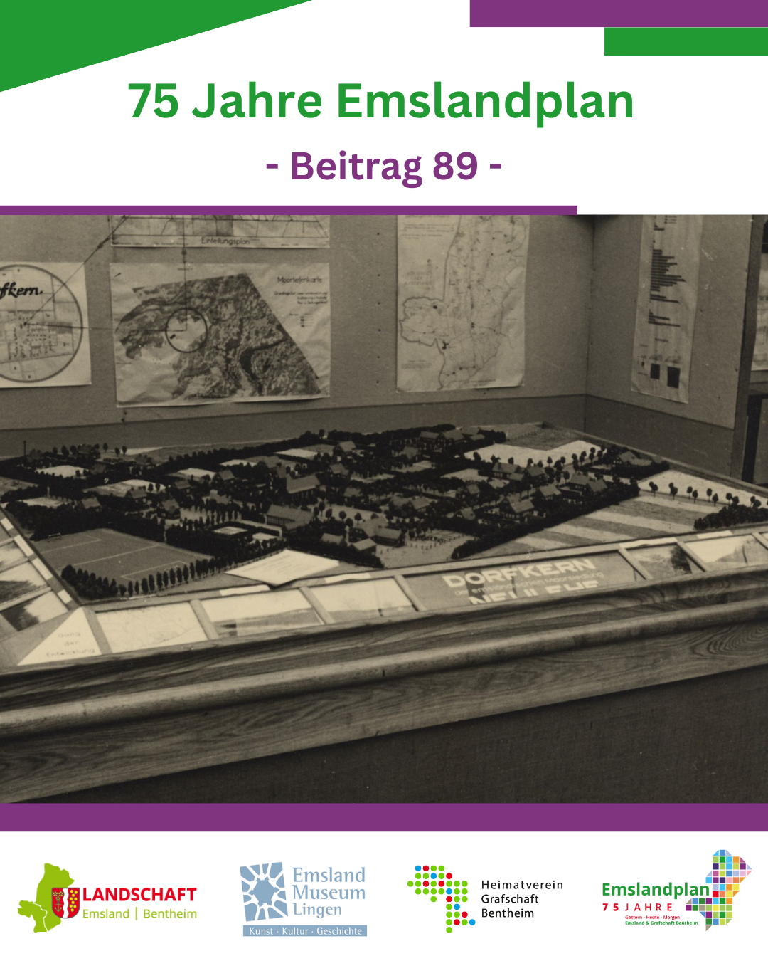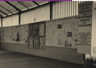 Öffentlichkeitswirksam wurde der Auftakt zu Beginn des Emslandplans durch die Emsland-Ausstellung inszeniert. Vom 19. bis 27. Mai 1951 hatte die Emsland GmbH zu der Ausstellung „Emsland – Grenzland – Zukunftsland“ in Meppen eingeladen. Die Ausstellung sollte auf die Defizite in der Region aufmerksam machen und die Notwendigkeit des Emslandplans unterstreichen. Daher hatten sich zahlreiche Behörden, die auf irgendeiner Weise mit dem Emslandplan in Berührung standen, dort präsentiert. Die Fotos geben einen guten Einblick in die vielseitigen Aspekte des Emslandplans. Anhand von Karten und Fotos wurden Brückenbau, Ausbau von Straßen oder auch das große Problem der Entwässerung dargestellt. Der Regierungspräsident aus Osnabrück mit seiner Behörde für Landesplanung und Statistik zeigten die Struktur der Region auf. Die Karten verdeutlichen die Landesstruktur, die zentralen Orte, die Berufsgliederung, die Altersstruktur der Bevölkerung, die Bevölkerungsentwicklung oder auch die territoriale Entwicklung der Region. Der Neubau von Dörfern war hier ebenso Thema, wie es anhand des Models des Dorfes Neulehe dargestellt wurde. Durch den Emslandplan sollten neue Dörfer entstehen. Wer mehr über die Öffentlichkeitsarbeit der Emsland GmbH und des Emslandplanes erfahren möchte, ist herzlich in die Ausstellung „Propaganda und Aufklärung. Die Arbeit der Emsland GmbH im Spiegel ihrer Öffentlichkeitsarbeit“ eingeladen.