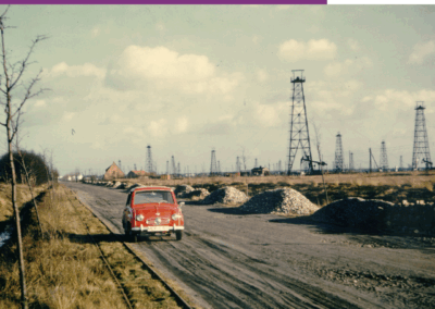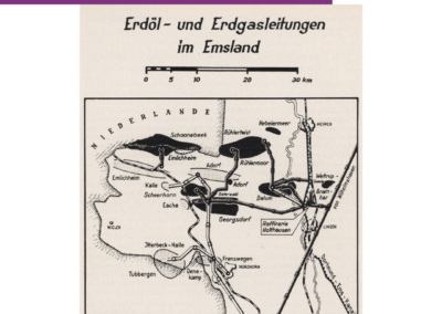 Der Emslandplan war 1950 auch mit dem Ziel ins Leben gerufen worden, die Erdölvorkommen gezielter ausbeuten zu können. 1942 war bei Geeste-Dalum ein Erdölfeld entdeckt worden und nach dem Zweiten Weltkrieg sollte die Erdölförderung richtig Fahrt aufnehmen. Die Vorkommen im Emsland galten in den 1950er Jahren als die größten Europas. Die Erdölindustrie trug auch dazu bei, dass viele der Heimatvertriebenen und Flüchtlinge über die Arbeit integriert werden konnten. Das Erdöl brachte einen hohen Wohlstand in die Region. Besonders die Siedlung Dalum (Geeste) profitierte von diesem Aufschwung, wie auch die hier gezeigten Bilder aus dem Gemeindearchiv Geeste verdeutlichen. Jedoch führte die Erdölförderung auch immer wieder zu Problemen für die Umwelt. So waren bspw. im Sommer 1959 in einer Ölschlammgrube zahlreiche Vögel gestorben, da diese aufgrund fehlender Wasserstellen dort gelandet waren. Die Ems-Zeitung betitelte dies als „Erschütternde Tiertragödie“.