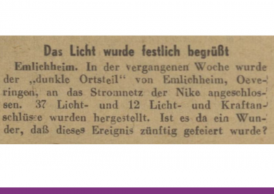 Aber: Selbst noch Anfang der 1950er Jahre waren nicht alle Haushalte in der Grafschaft Bentheim an das öffentliche Stromnetz angeschlossen. In den dünn besiedelten Teilen der Niedergrafschaft war die Versorgung noch lückenhaft, besonders in kleinen Orten und Außenbereichen. Ein Beispiel hierfür ist Oeveringen (heute zur Samtgemeinde Emlichheim). Die Finanzspritze des Emslandplans half 1951, die letzten 49 Gebäude und Höfe endlich an das Stromnetz der NIKE anzuschließen. Für die Bevölkerung begann eine neue Zeit, die festlich begrüßt wurde!